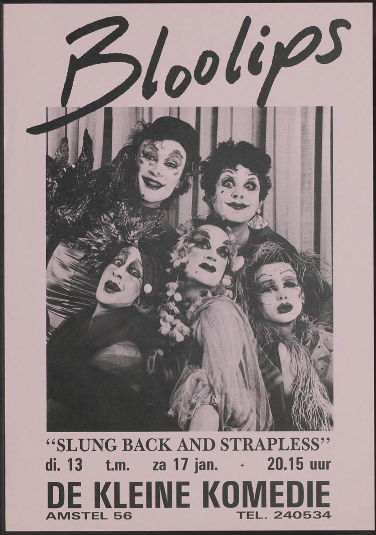 When I arrived in Amsterdam, I discovered the Festival of Fools no longer existed. But I found my way back to a life in the theater anyway. A year and a half later the Bloolips did come to town with their show Slung Back and Strapless. I surprised them with a visit at their hotel and explained I couldn’t see their performance. I was in a play myself that night. (The first play about AIDS to be done in Amsterdam – another story for another time.) I gave them a big bunch of tulips to say thank you. For what, they asked? Just for being their fantastical inspiring selves.